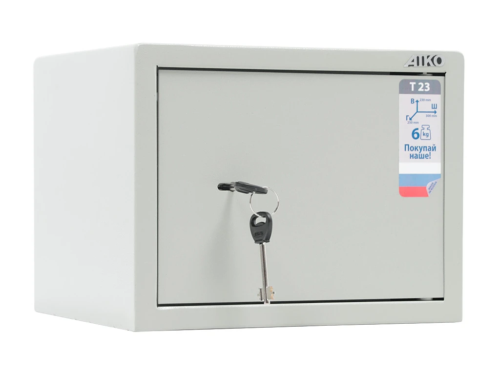 - — Офисный сейф Aiko T-23 имеет сертификат соответствия стандартам ГОСТ на начальную устойчивость ко взлому и соответствует требованиям МВД РФ к хранению огнестрельного оружия.